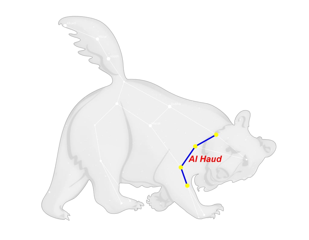 En los primeros tiempos de Arabia, Al Haud, era el Estanque en el que la Gacela saltó cuando se asustó ante el azote de la cola del León; aunque algunos de los observadores árabes afirmaron que este estanque se encontraba entre las estrellas del cuello, el pecho y las rodillas de la Osa Mayor: y Lach lo sustituyó por la Gacela en nuestra ubicación de Leo Menor. Ideler adoptó esto de Al Tizini y el globo Cúfic en Dresde; mientras que el globo Borgian muestra a una gacela y su cría en el mismo lugar. Kazwini, sin embargo, describió a este grupo extendiéndose sobre los ojos, las cejas, las orejas y el hocico de la figura de nuestra Osa Mayor.