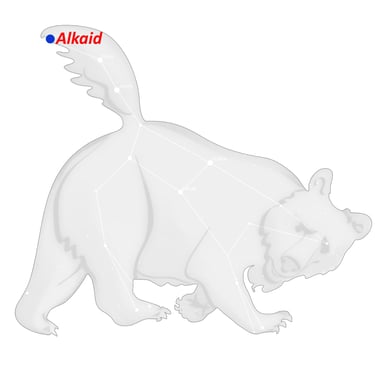 Eta (η) Ursa Major, Alkaid, es una estrella blanca brillante en la cola de la Osa Mayor.