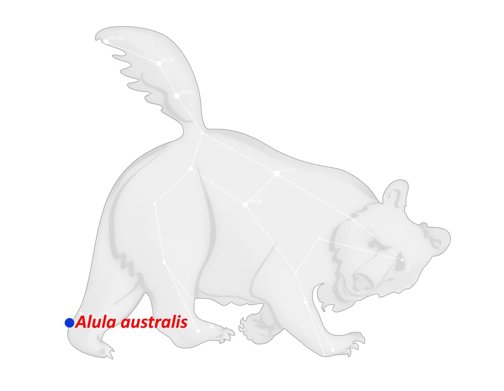 Xi (ξ) La Osa Mayor, Alula Australis, es la estrella del sur en la pata trasera izquierda de la Osa Mayor.