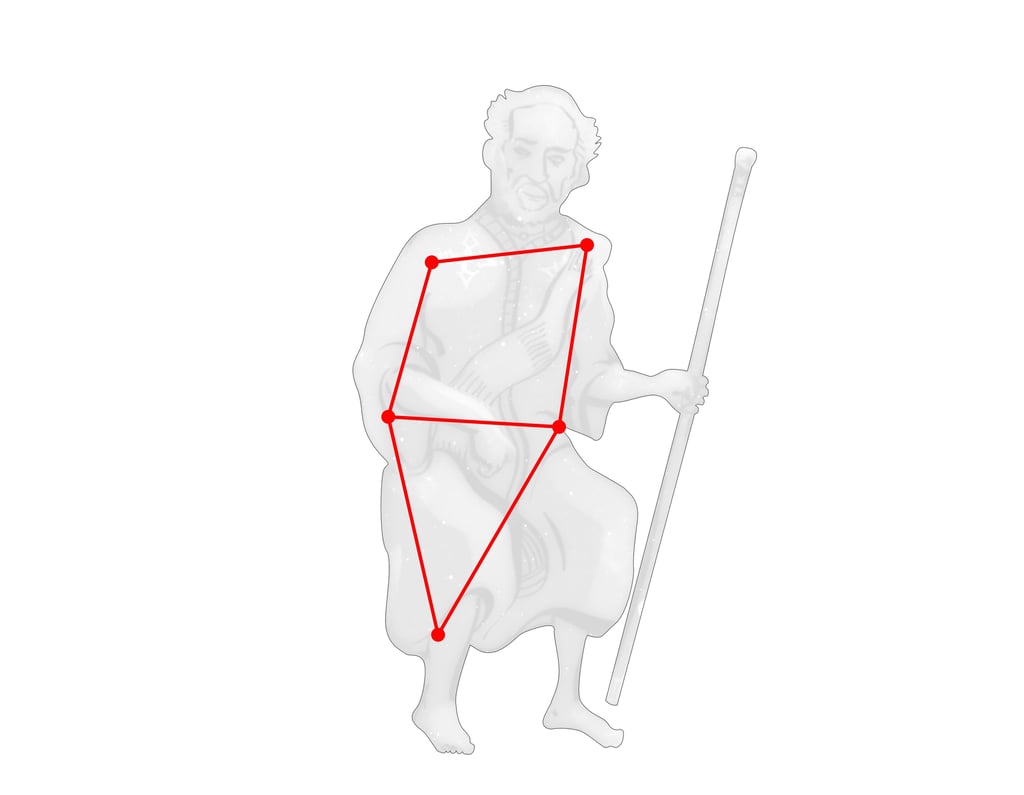 Cefeo está representado con un pie sobre la estrella polar (Polaris, Alruccabah en la imagen de arriba). La estrella polar está en la cúspide de los cielos. Su nombre puede estar relacionado con la palabra mono, la palabra "mono" también podría relacionarse con el "ápice", ¿el punto más alto?