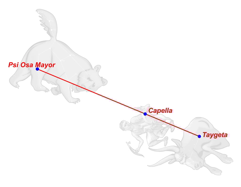 Otra versión de este trabajo es que esta cierva (Psi Osa Mayor) era la que la pléyade Táigete (Taygeta), hermana de Alcíone, había dedicado a Artemis en agradecimiento por haberla transformado temporalmente en cierva (Capella) y haber podido eludir así los abrazos de Zeus.