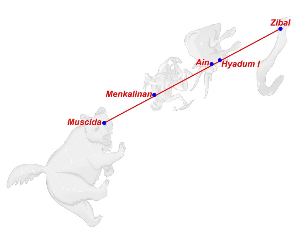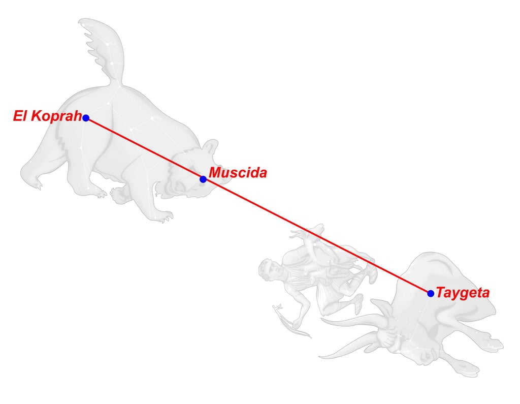 o que siguió el rastro de la cierva hasta que la encontró dormida (Psi Osa Mayor) bajo un árbol (El Kophrah).