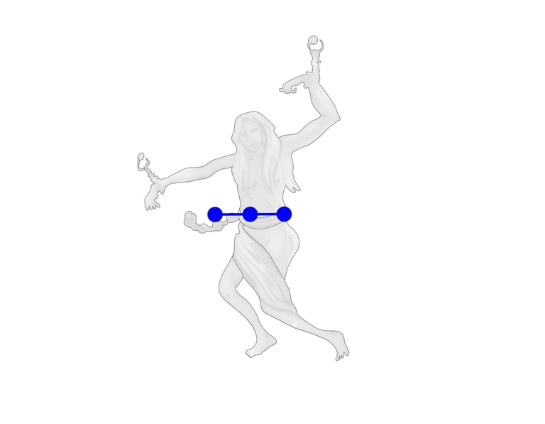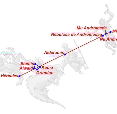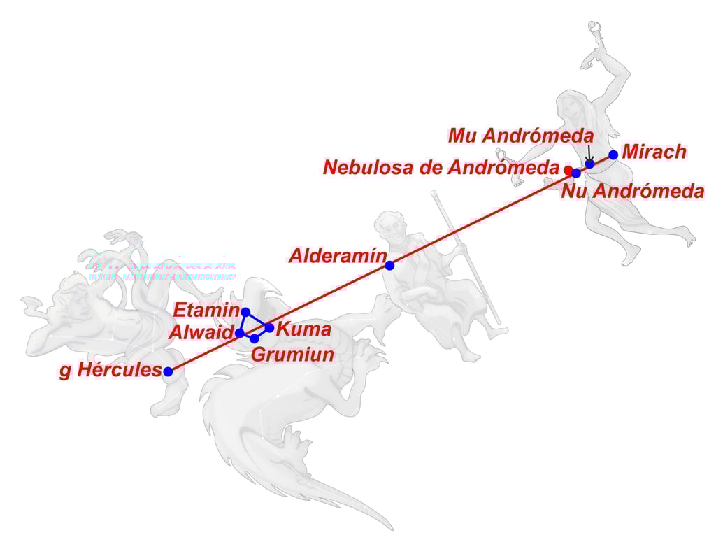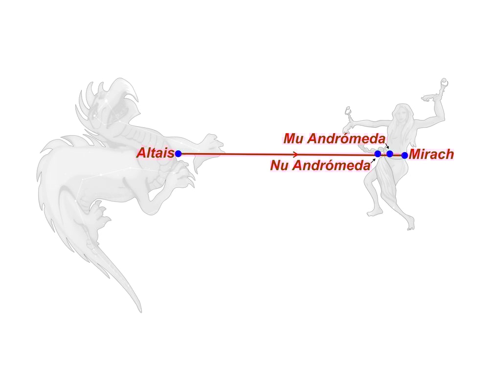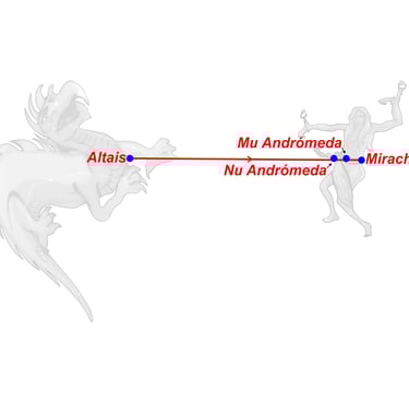 Cuando llegó a la desembocadura del río Termodonte, Heracles atracó su barco en el puerto de Temiscira (Nu Andrómeda), donde Hipólita le hizo una visita y, atraída por su musculoso cuerpo, le ofreció el cinturón de Ares como prenda de amor. Pero entretanto Hera (Mu Andrómeda) había ido de un lado a otro, disfrazada de amazona, difundiendo el rumor de que aquellos extranjeros se proponían raptar a Hipólita, en vista de lo cual las guerreras, irritadas, montaron en sus caballos y se lanzaron contra el navío. Heracles, sospechando una traición, mató a Hipólita (Mirach) en el acto, le quitó el cinturón, se apoderó de su hacha y de otras armas y se preparó para defenderse. Dio muerte una tras otra a todas las caudillas de las amazonas y, tras una gran matanza, puso en fuga a su ejército.