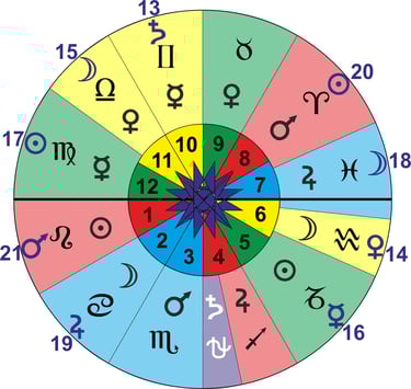 Si tomo como orden de los planetas exaltados en los signos del orden de Santiago, y trazo líneas entre los signos de la misma naturaleza, me queda la siguiente imagen: