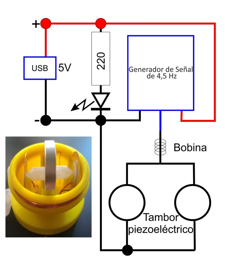 - Discos piezoeléctricos tipo tambor 27mm en serie con la bobina