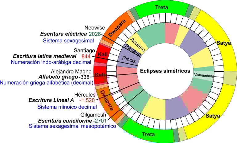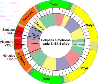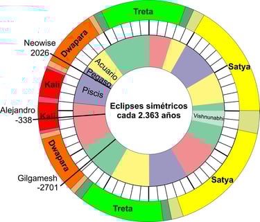 Si tomo como eje el eclipse del 30/08/-338 y le resto 2.363 años, da el año 11/02/-2.701. Si le sumo 2.363 años da el eclipse del día 12/08/2026 y con ello la siguiente imagen: