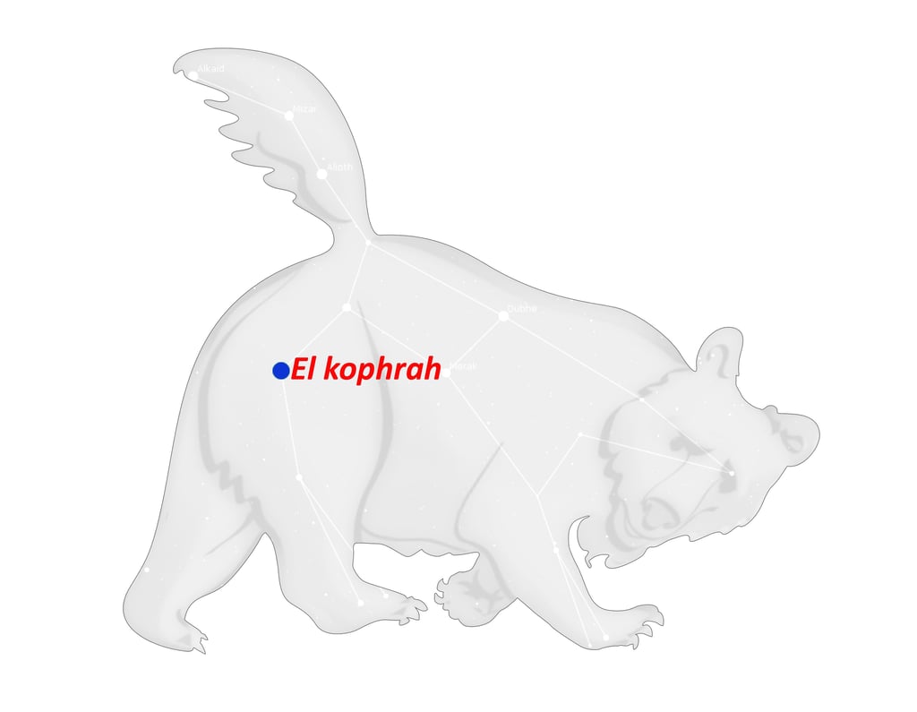 Chi (χ) Ursa Major, El Kophrah, es una estrella roja en los cuartos traseros de la Osa Mayor.