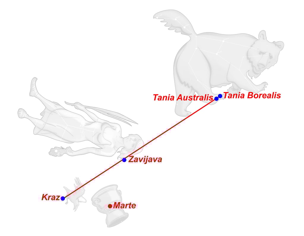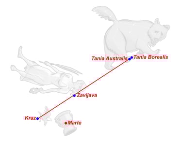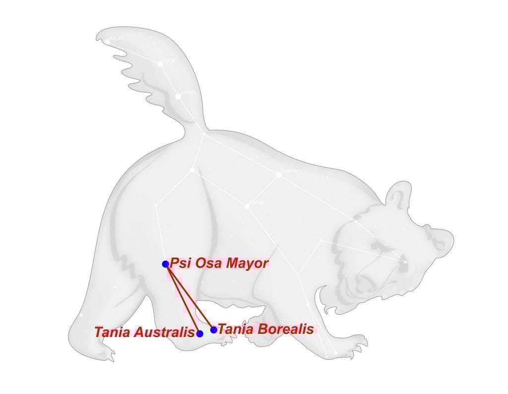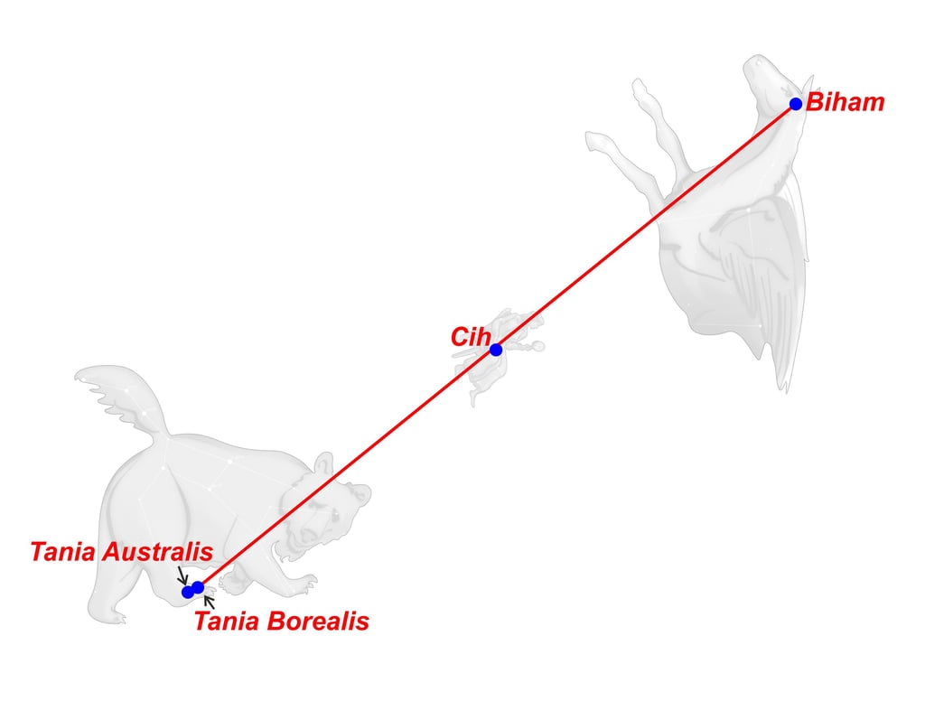 Oto (Tania Australis) y Efialtes (Tania Borealis), los Alóadas, eran dos gemelos hijos de Ifimedea (Cih) y Poseidón (Biham) que crecían cada año un codo a lo ancho y una braza a lo alto. Eran agresivos, buenos cazadores, y no podían morir salvo si se mataban entre sí.