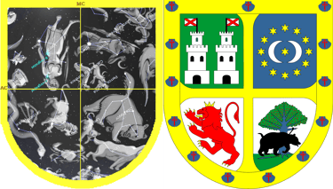 En la imagen se puede observar que las casas correspondientes a los signos Libra, Virgo, Leo y Cáncer están intercambiados, ya que es el orden de los mitos de los trabajos de Hércules, los cuales son catasterísmos de los signos del zodiaco.