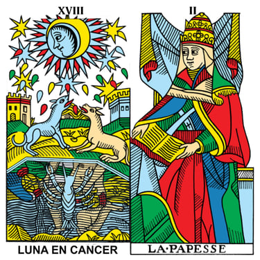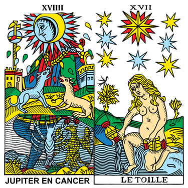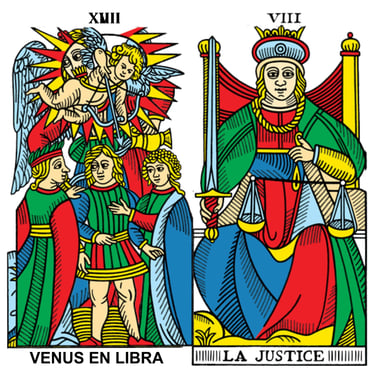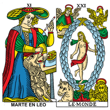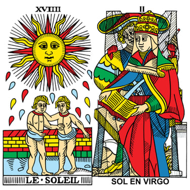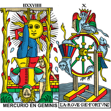 El orden de los planetas y el orden de los arcanos mayores no es el mismo, los arcanos tienen el nombre original en francés para que sean lo más fidedigno posible.