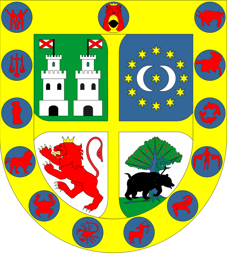 Por lo que las batallas ganadas del escudo corresponden a los diferentes trabajos de Hércules, que son los diferentes signos del zodiaco. Por lo que el escudo quedaría de la siguiente manera: