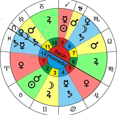 El signo de Piscis en la zona húmeda se exilian Mercurio y Saturno por ser cálidos y húmedos.