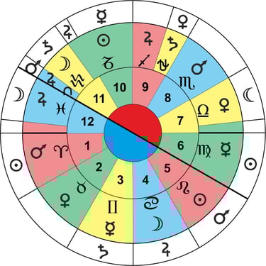 Los planetas del interior de la rueda son los regentes de los signos, mientras que los exteriores son los planetas exaltados en el signo.