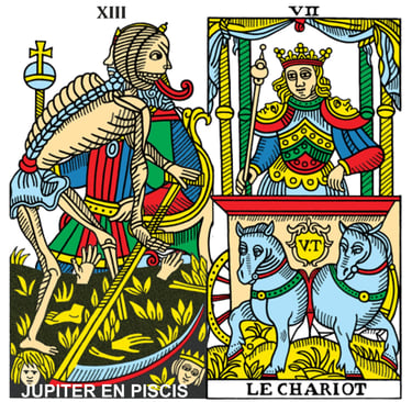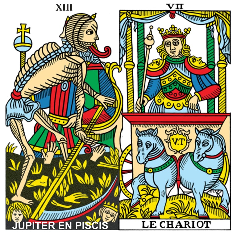 El Emperador representa a Júpiter, mientras que la Muerte representa a Piscis por estar en la casa XII.
