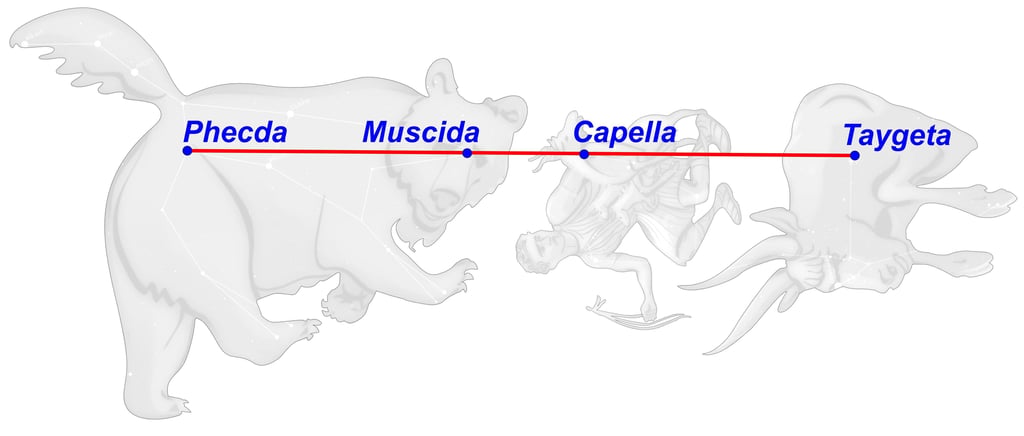 Otra versión de La cierva de Cerinia es que era la que la pléyade Táigete (Taygeta), hermana de Alcíone, había dedicado a Artemis en agradecimiento por haberla transformado temporalmente en cierva (Capella) y haber podido eludir así los abrazos de Zeus. Sin embargo, no era fácil engañar a Zeus por mucho tiempo, y finalmente engendró de él a Lacedemón (Muscida); inmediatamente después del parto ella se ahorcó en la cumbre del monte Amicleo (Phecda), que en adelante se llamó monte Taigeto.