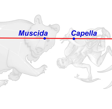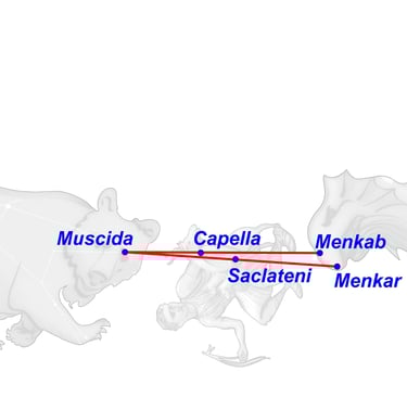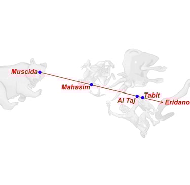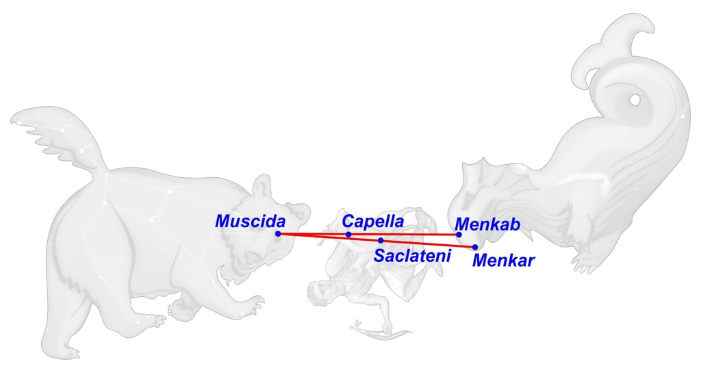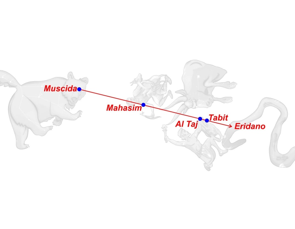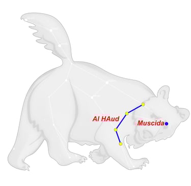 Cuando un día Hera descubrió que las hijas de Atlante, las Hespérides, a quienes había confiado el árbol, hurtaban las manzanas (Al Haud), mandó al siempre vigilante dragón Ladón (Muscida) para que se enroscara alrededor del árbol como su guardián.