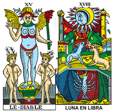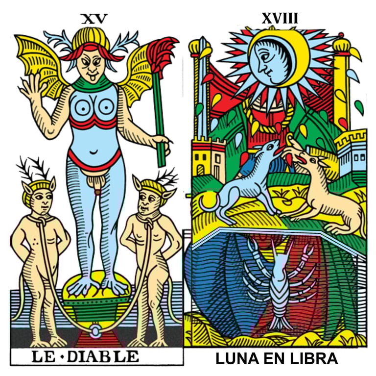En este caso la carta de abajo es la Justicia y representa a Libra, mientras que la que se superpone el la Luna.