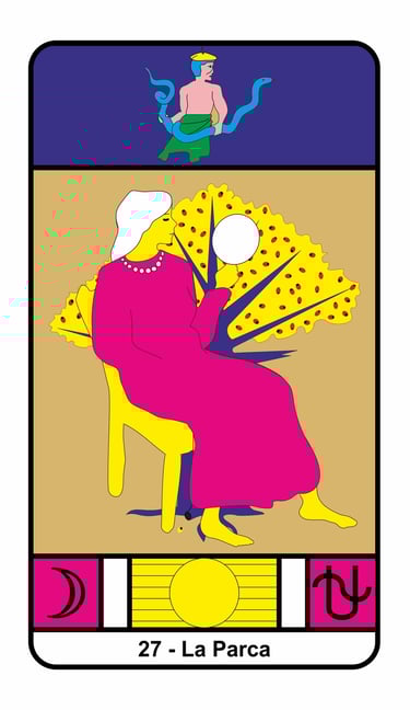 La carta de abajo es el loco y representa a Saturno, mientras que la que esta superpuesta es la luna y representa a la Luna.