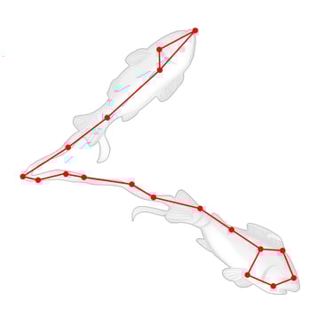 Leyenda: Venus y su hijo Cupido mientras estaban sentados en la orilla del Éufrates de repente vieron a Typhon, el enemigo de los Dioses, acercándose a ellos. Saltaron al río y fueron salvados de ahogarse por dos peces, que luego fueron colocados en los cielos por Venus en agradecimiento por su ayuda. [Robson, p. 57.]