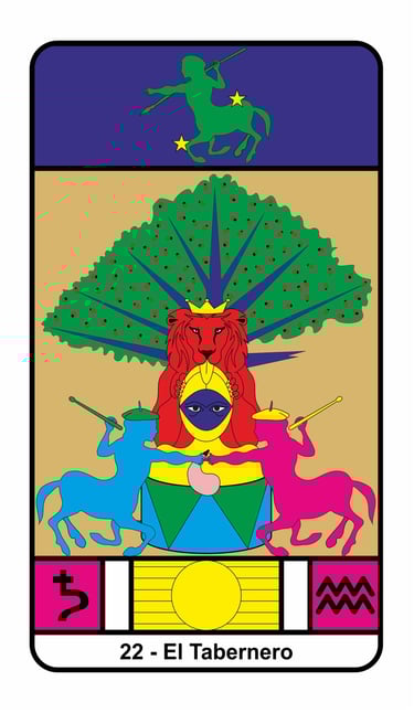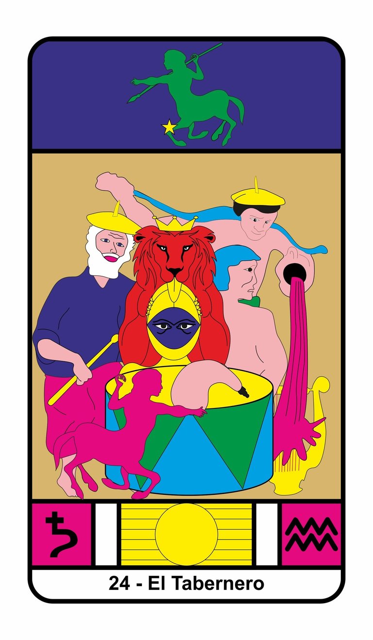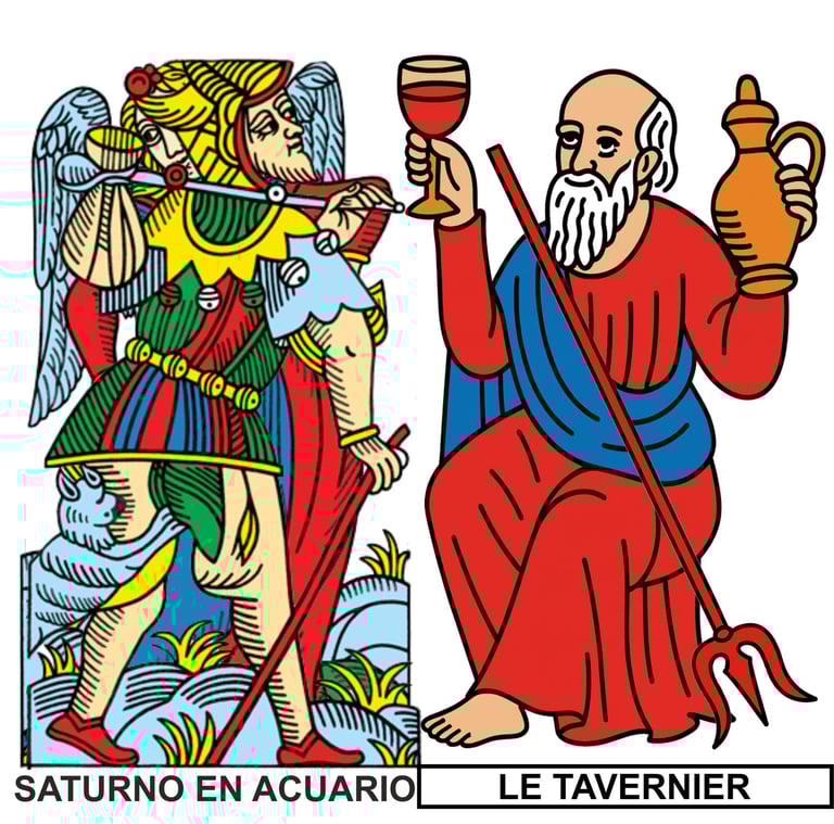 La carta de abajo es la Templanza y representa a Acuario, mientras que la que esta superpuesta es el Loco y representa a Saturno.