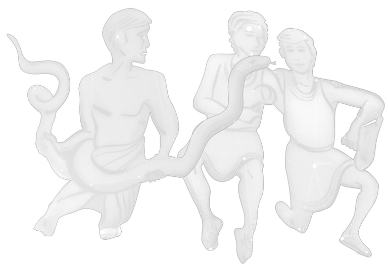 Belo era hijo de Libia (Constelación Andrómeda) y Poseidón (Constelación Pegaso) y hermano gemelo de Agenor (dentro de la constelación Auriga están los dos cabritos). Su esposa Aquinoe le dio dos mellizos Egipto y Dánao (Constelación Géminis).