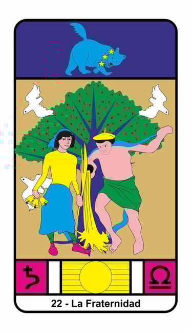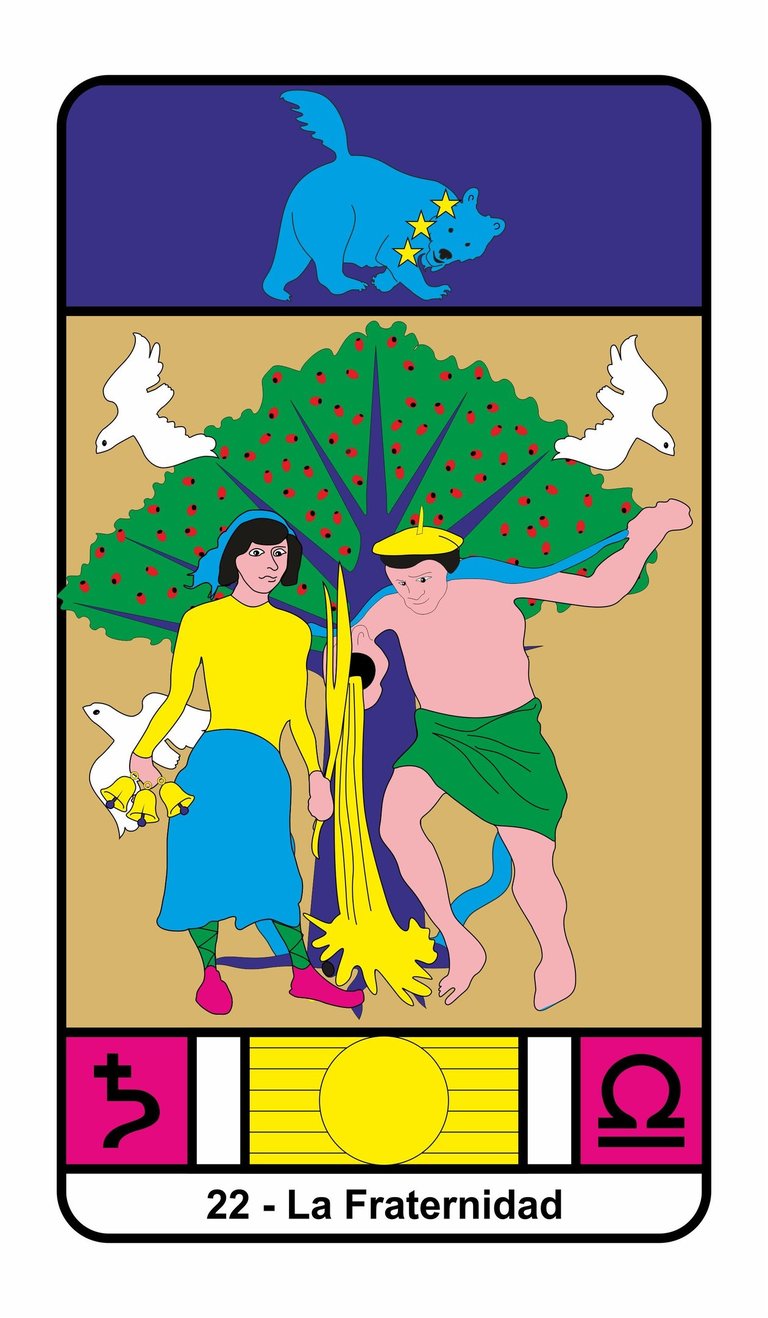 La carta de abajo es la Justicia y representa a Libra, mientras que la que esta superpuesta es el Loco y representa a Saturno.