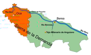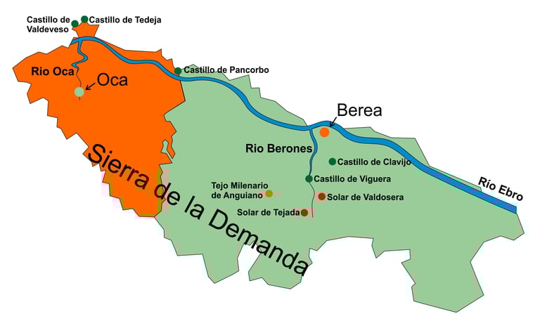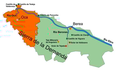 Fundaron en dicho río una población, poniéndole por nombre Berea, y a un río que, despeñándose de aquella montaña, hoy los Cameros, entra en aquel sitio en el Ebro, llamaron Berones. Asimismo, poblaron otra zona en el río llamado Oca, y se les conoció como Rucones.