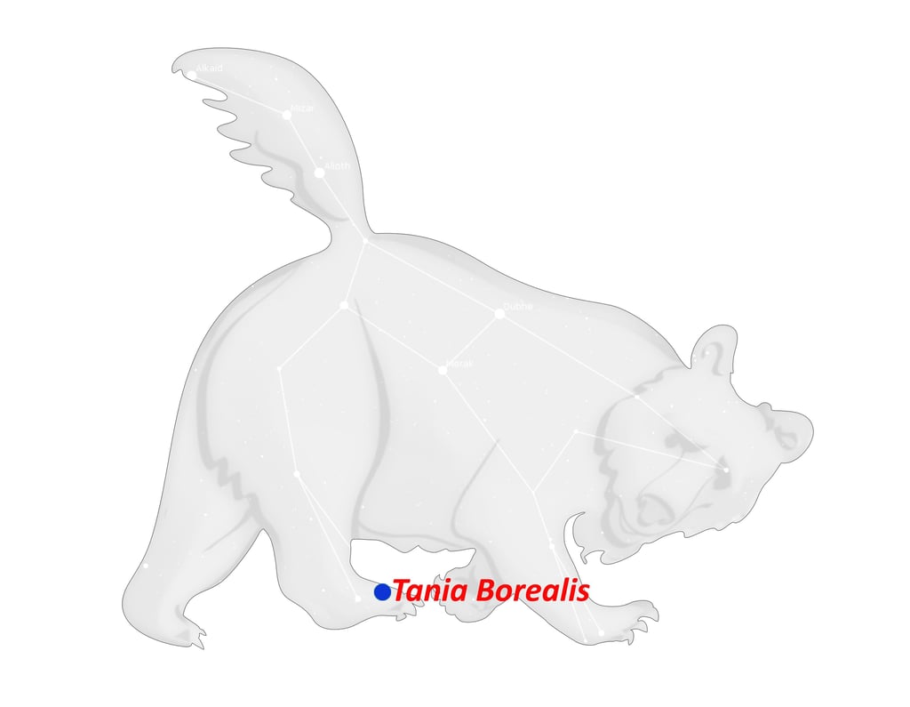 Lambda (λ) Ursa Major, Tania borealis, es una estrella en la pata trasera derecha de la Osa Mayor.