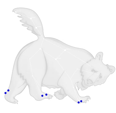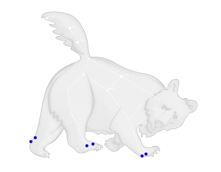 Lambda (Tania Borealis) y mu (Tania Australis) juntas, marcando la pata trasera izquierda del oso, eran "el segundo manantial" de la gacela.
