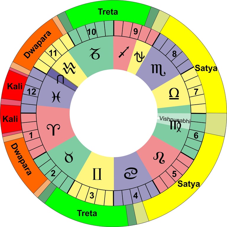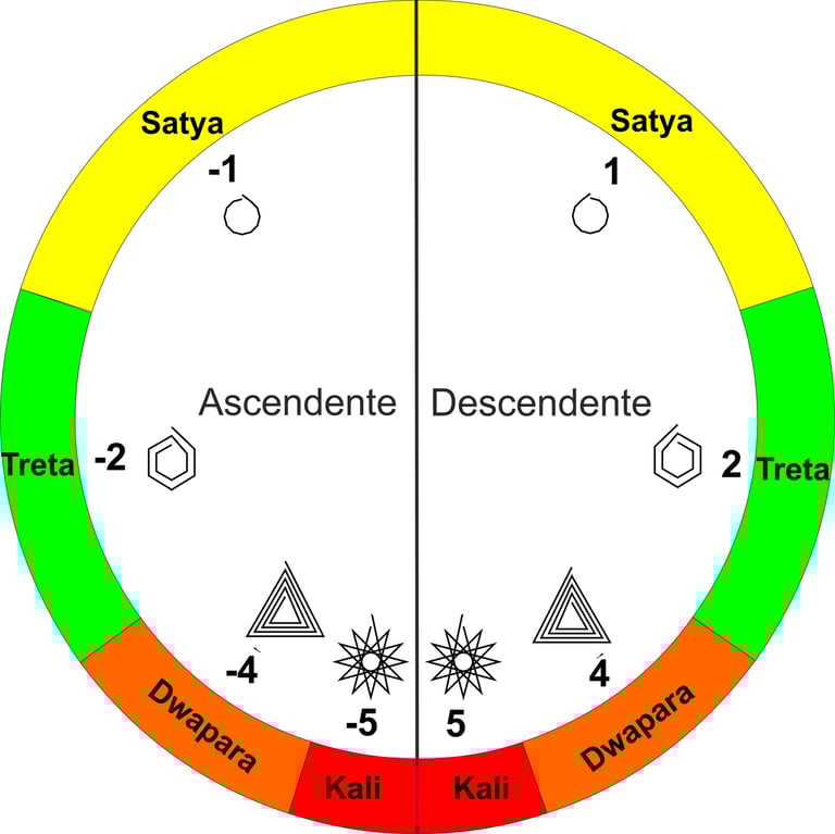 Los Yugas son eras o periodos de tiempo en los que está dividido una vuelta del Sol a ése centro. Están divididos en ascendente y descendente.
